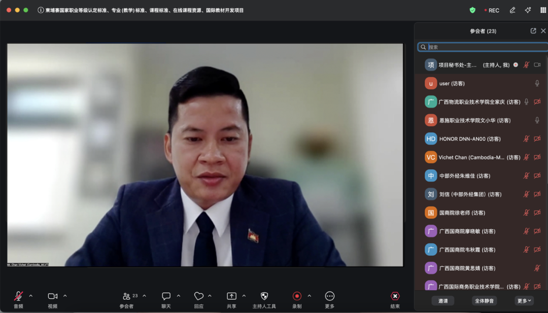 会议最后,主持人总结指出,标准共建是中柬职业教育合作的起点,未来将以此为基础,拓展海外师资培训、留学生招生、境外办学等多层次合作项目。项目秘书处将继续组织系列培训和评审会议,确保项目高质量推进。