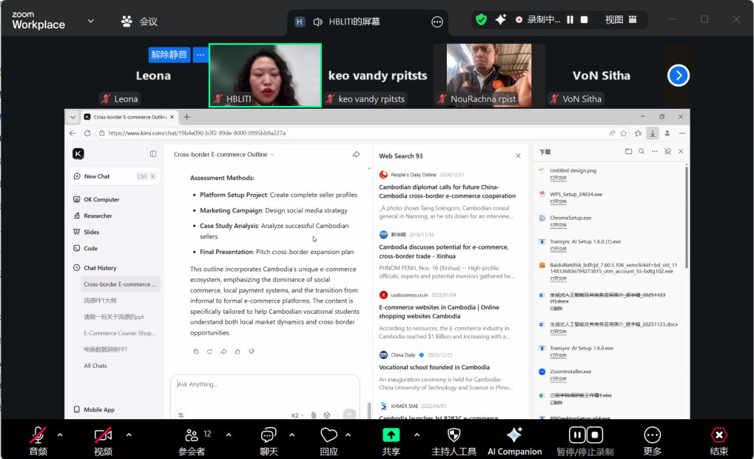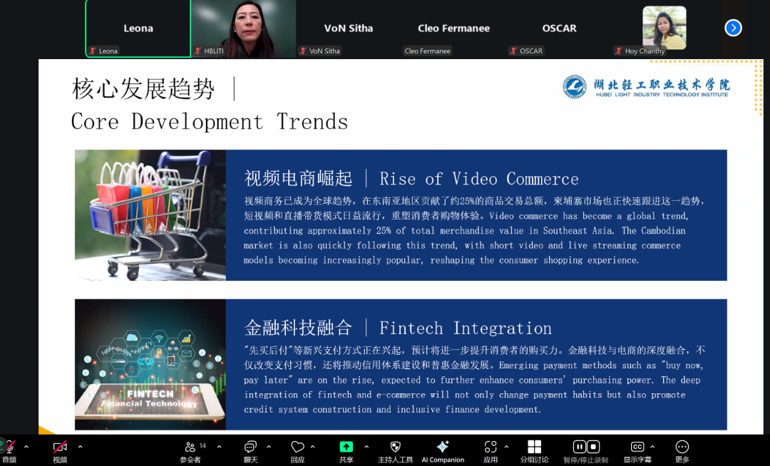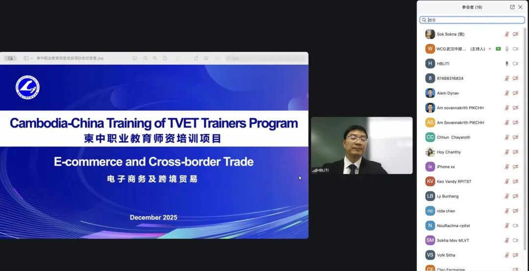 近日,为期6天的柬埔寨职业院校师资能力提升线上培训圆满落幕。本次培训以“电子商务及跨境贸易”为核心,紧扣柬埔寨职教发展需求与数字经济趋势,构建了从基础理论到实操技能的完整课程体系。授课老师们既带来了系统的知识框架,又分享了鲜活的实践案例,更通过实操教学帮助大家掌握了可直接应用的教学与从业技能,真正实现了“学有所获、学以致用”。